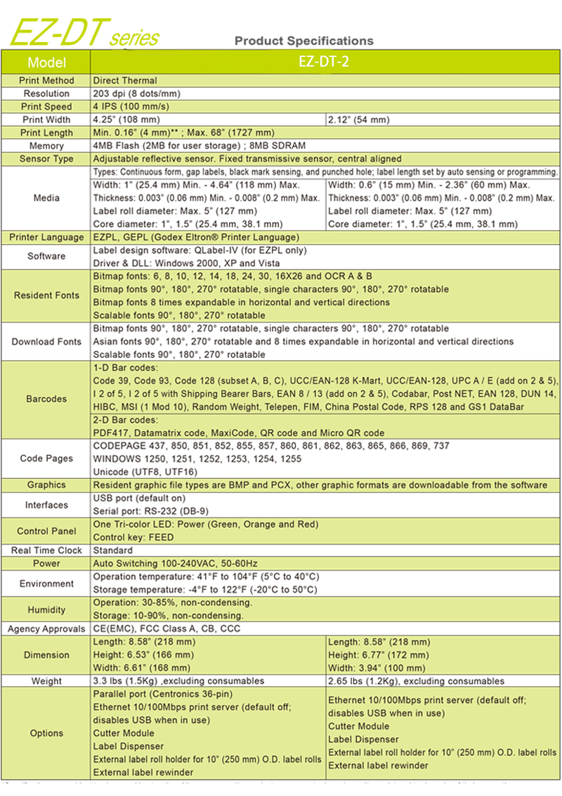 Subject : GODEX EZ-DT-2 Barcode Label Printer